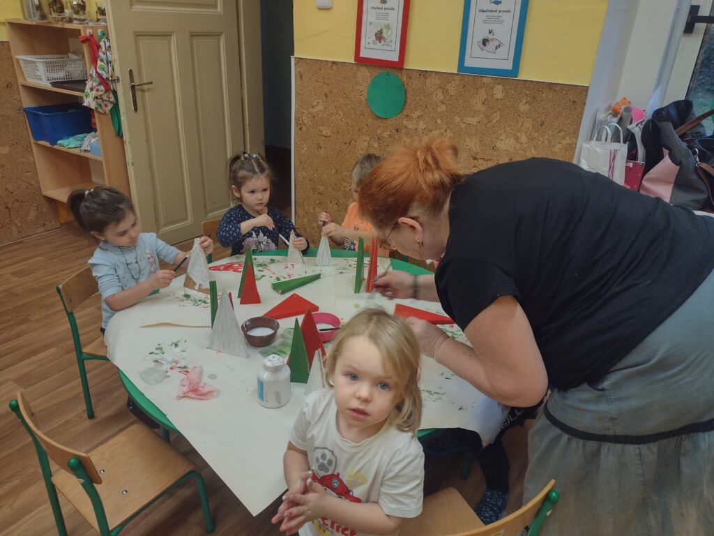 Podzimní počasí nám přeje a tak trávíme spoustu času venku. Na zahrádce děti hrabou listí a poprvé zkoušíme vyrobit Listovku, tak nám držte palce 🙂 Podzimní příroda se krásně zbarvuje a při procházkách po okolí pozorujeme tyto pestrobarevné změny. Už se pilně připravujeme na tradiční Vánoční zpívání 🙂